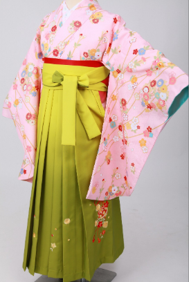 春タイプ:袴ツースタープラン 桜色二尺袖×イエローとオリーブのグラデーション袴